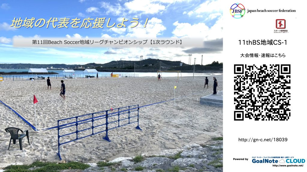 いよいよ明日11月1日(土)、全国各地域で開催されているビーチサッカーリーグの代表で競い合う「第11回Beach Soccer地域リーグチャンピオンシップ」が沖縄県西原町西原きらきらビーチで開幕します。JBSFではGoalNoteクラウドシステムで試合結果を速報でお知らせします。