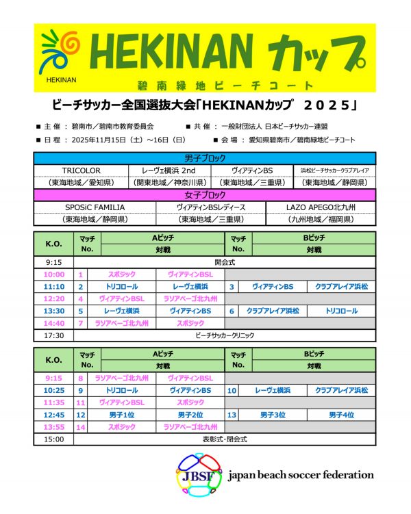 ◆ビーチサッカー全国選抜大会「HEKINAN カップ2025」