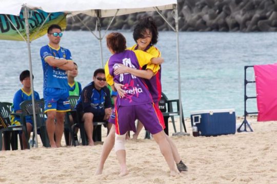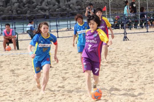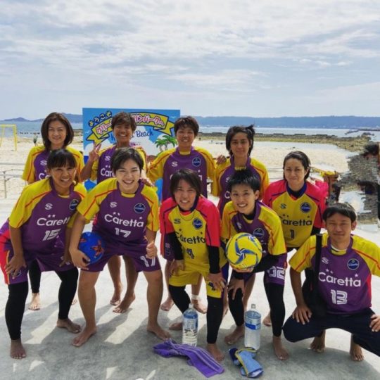 チームには指導者がおらず、他に女子ビーチサッカーチームもありませんでしたが、地元の強豪チーム「ソーマプライア沖縄」の皆さんに基礎から教えていただき、ジュニア世代やエンジョイ志向のチームとのゲームを組んでもらいながら活動を続けてきました。また、地元で開催されるビーチサッカーの全国大会や国際親善試合などの運営をお手伝いさせていただく機会もありました。